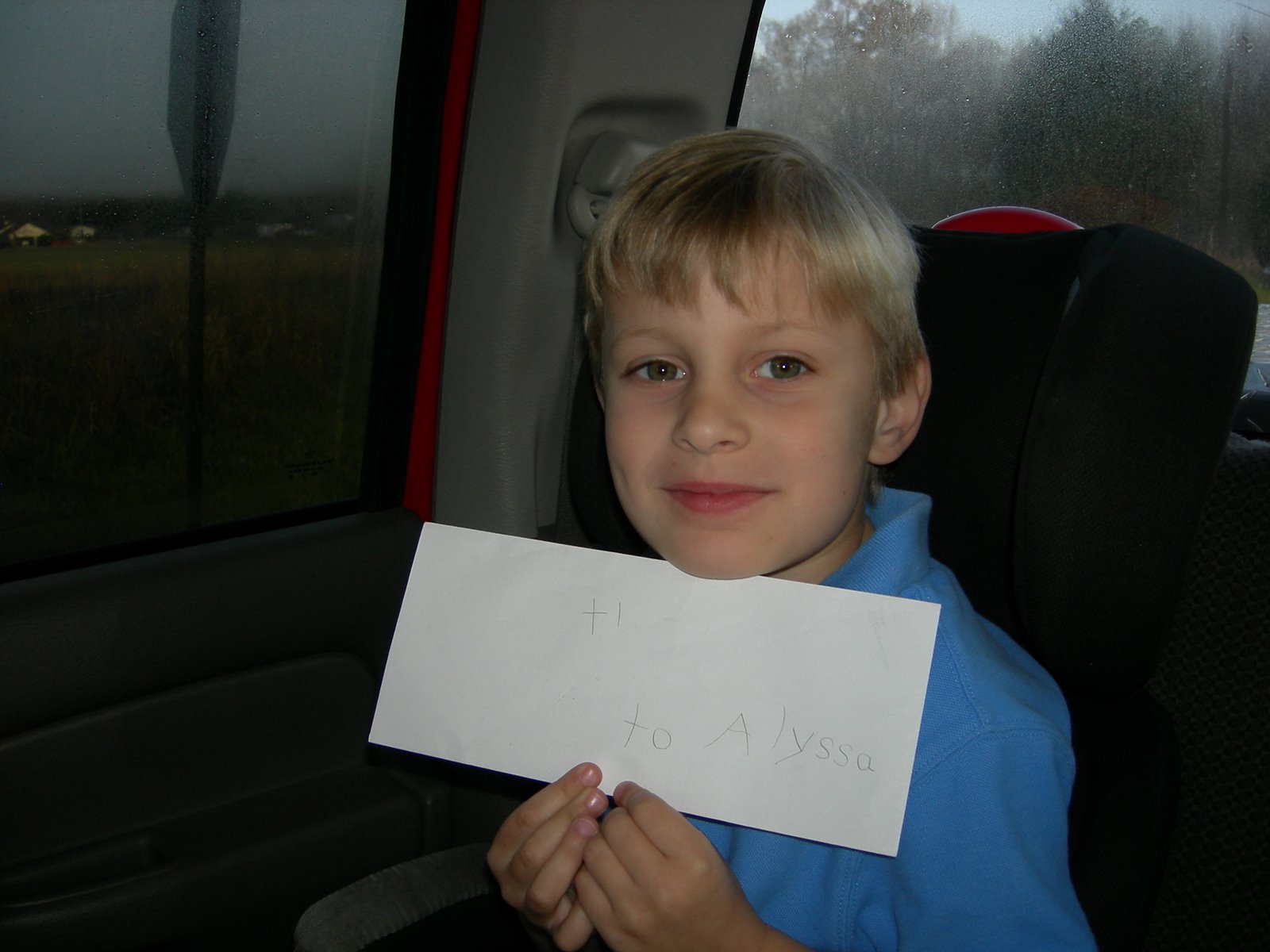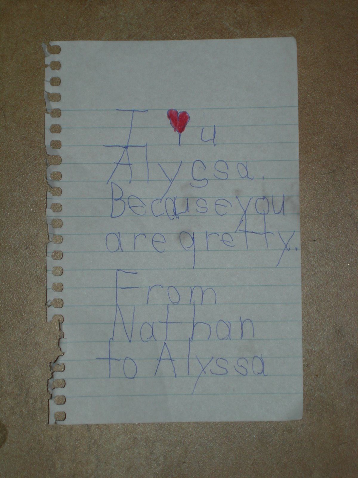 Nathan wrote her the note (pictured) and took it with him to school today. He didn't have the nerve to talk to her yesterday but today is another day.
